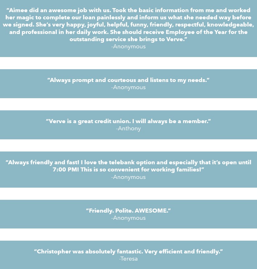 We’re proud to share that Verve has been voted the #1 Credit Union in Fond du Lac and named a Finalist for Best Mortgage Lending Company in this year’s Community’s Choice Awards for the second year in a row!
