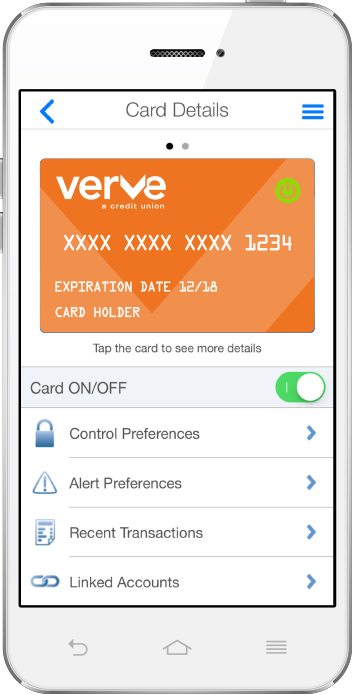 You call the shots. Whether you want an extra layer of fraud protection or to keep an eye on teen spending, Verve’s Card Boss app lets you take charge of your debit and credit cards by setting spending limits and choosing the transaction types, locations and merchant categories allowed on your cards.
